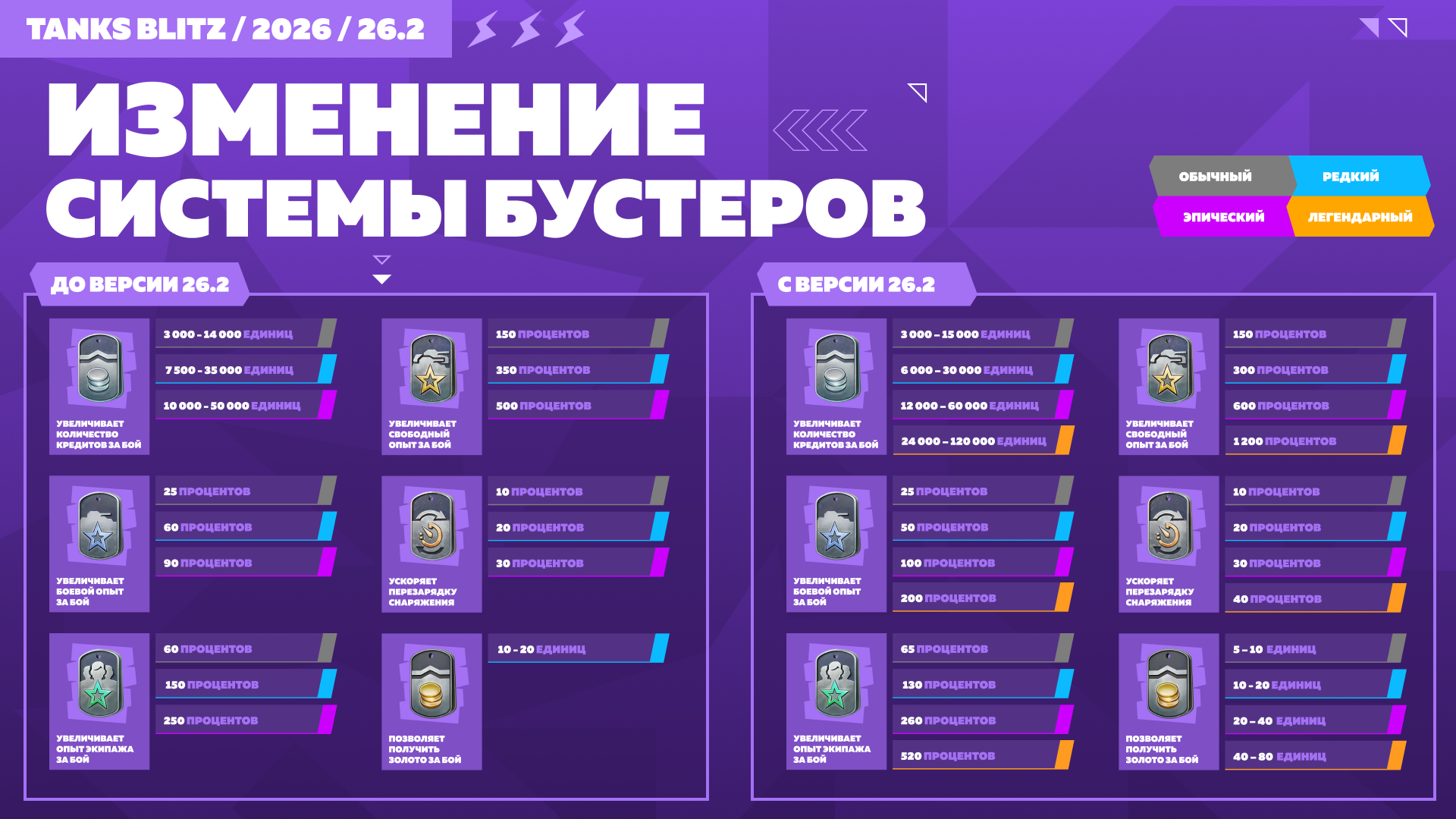 бустеров золота теперь есть все четыре грейда. Только представь: с Легендарным бустером голды ты получишь как минимум 40 за каждый бой!